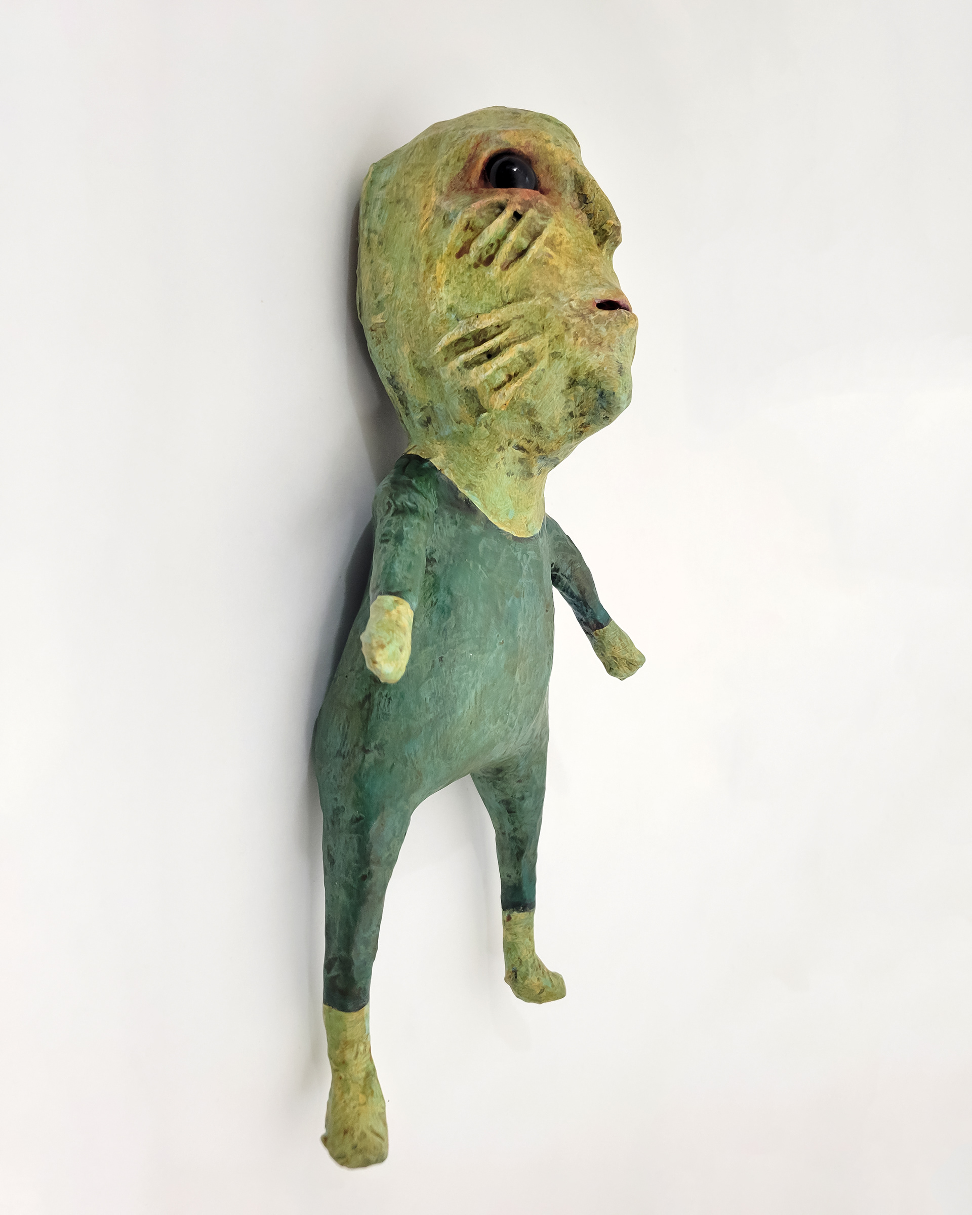 Our one-of-a-kind sculptures are created with masking tape over wire armatures that we make ourselves and their eyes are made of glass. Each sculpture is coated with layers of an acid-free water-based glue, painted with artists acrylics and a matte varnish for protection. They are signed, titled and dated on the bottom in india ink.