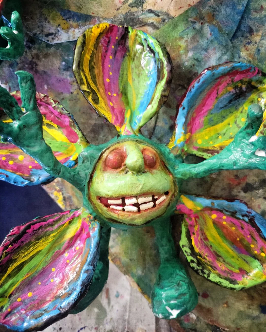 even a frog and turtle got caught up in the paintsplashing while spending time with the flower folks