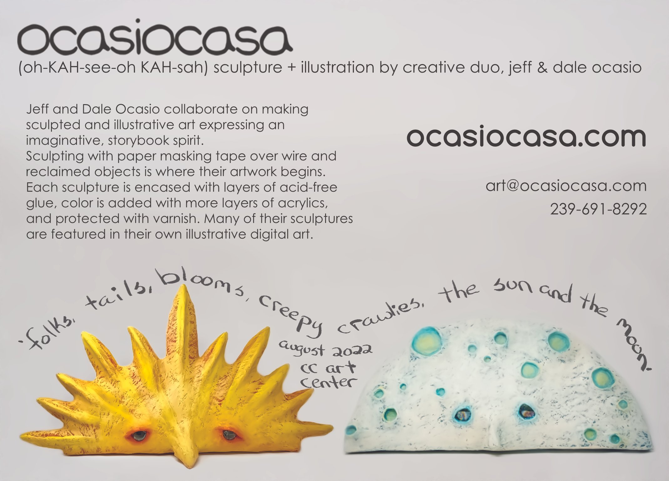 an exhibit encompassing the whole wide imaginary world of ocasiocasa, from up to the stars to deep in the oceans, and the simple things in life in between, a colorful, naïve, and uniquely skewed perspective is presented.